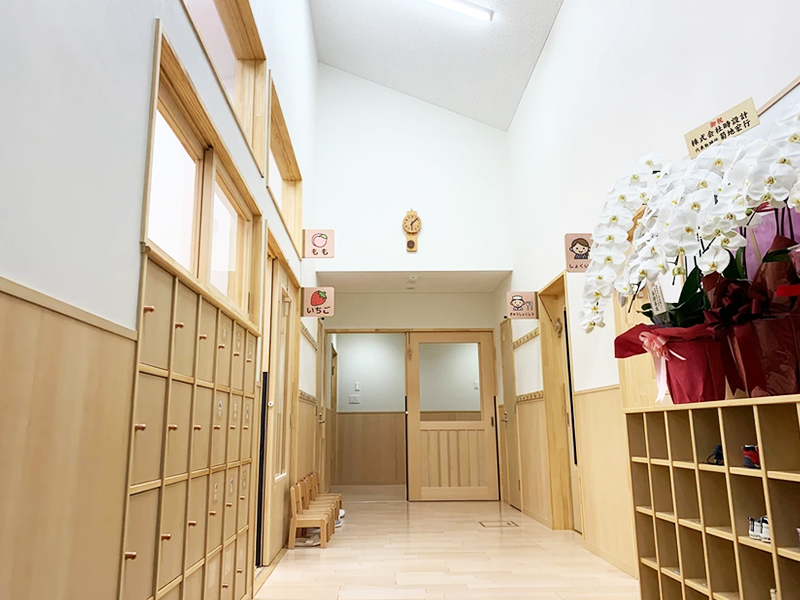 玄関には子どもたちの製作が飾ってあり、保護者の方は楽しみに見てくれています。