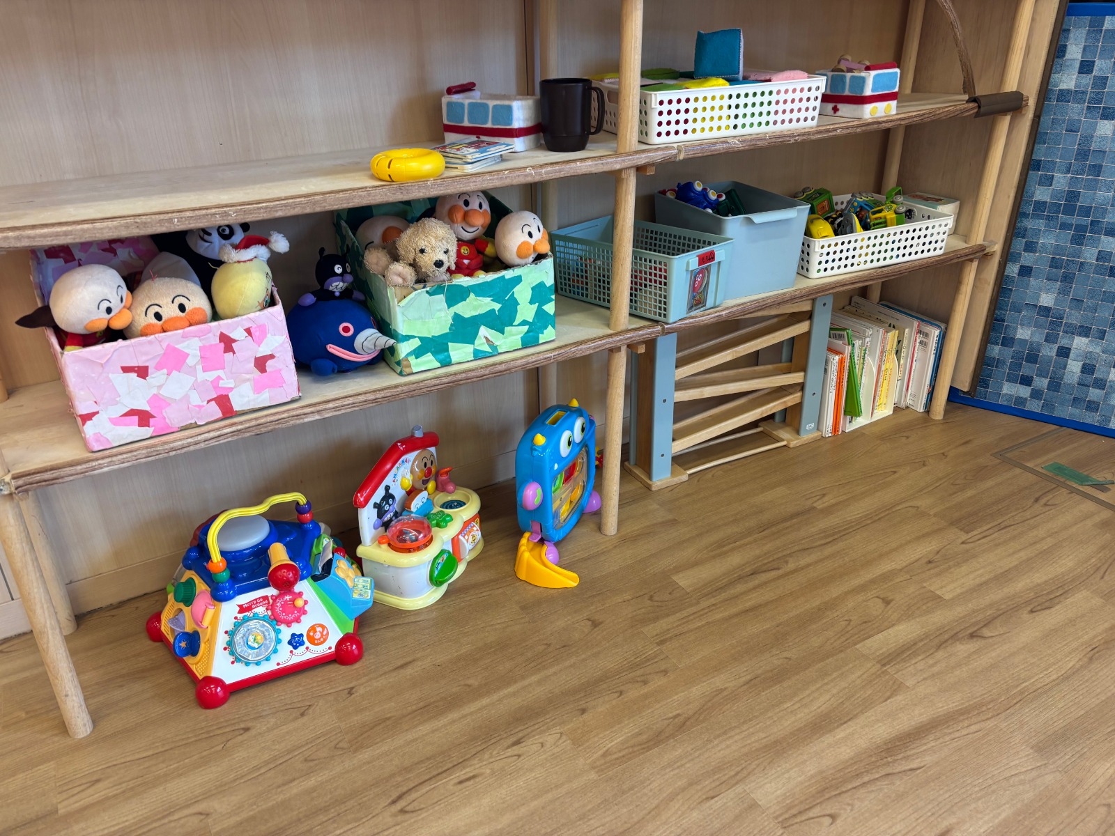手前左側が1.2歳児クラス。奥には幼稚園の2歳児クラスもあります。